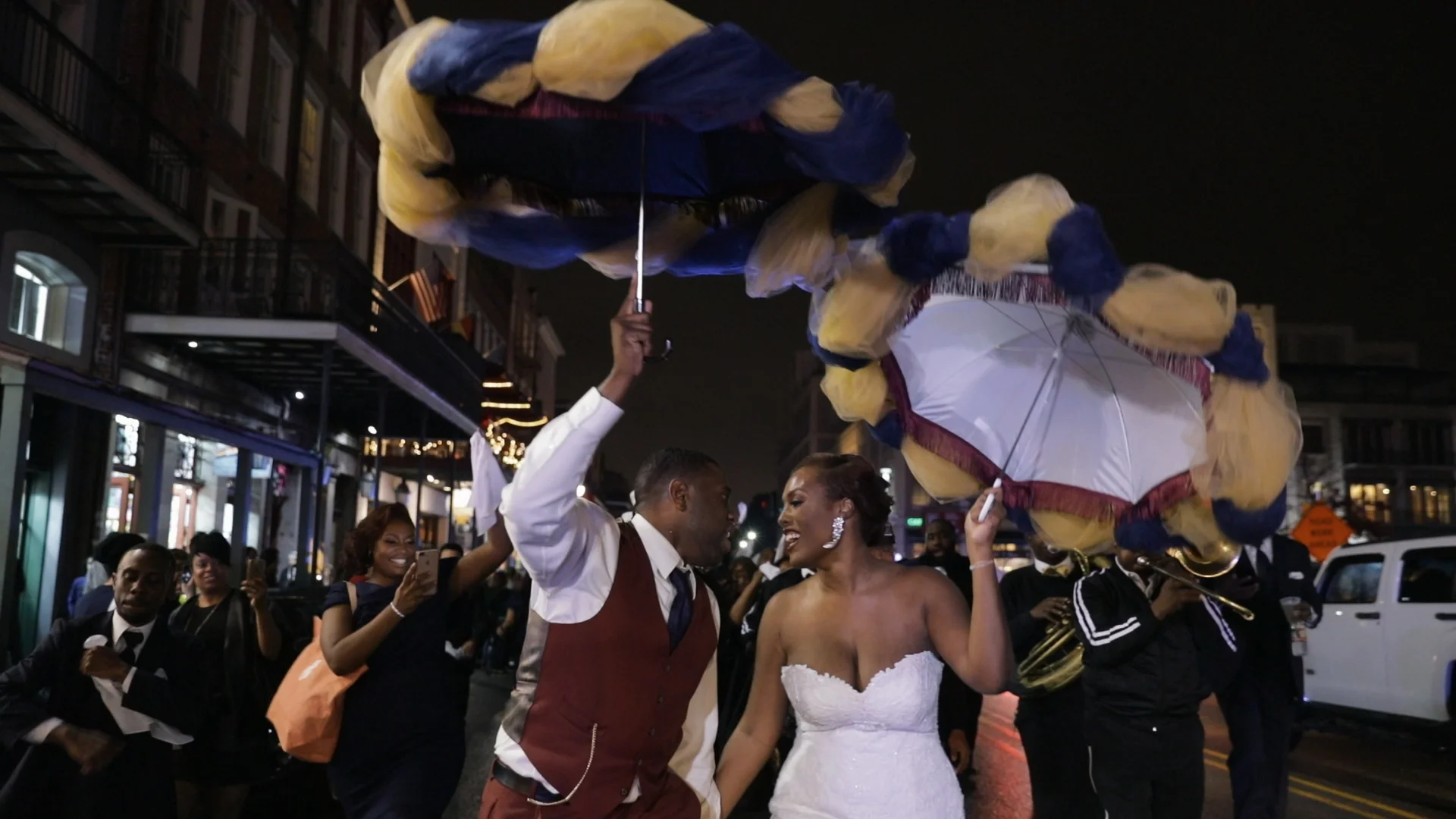 Fallon and DeVon brought their friends and family to New Orleans to celebrate their love and experience all the uniqueness of our great city. Fallon's father served as the officiant for their ceremony and melted our hearts with his words. We could feel the emotion in the room heighten even more when Fallon and DeVon recited their personal vows to each other. *TEAR* They didn't let the gray skies on their big day discourage them from finishing the night with one of the most exciting second lines we've ever seen. Watch their #BrideFilm to the very end to experience this party! #VonAndFal
